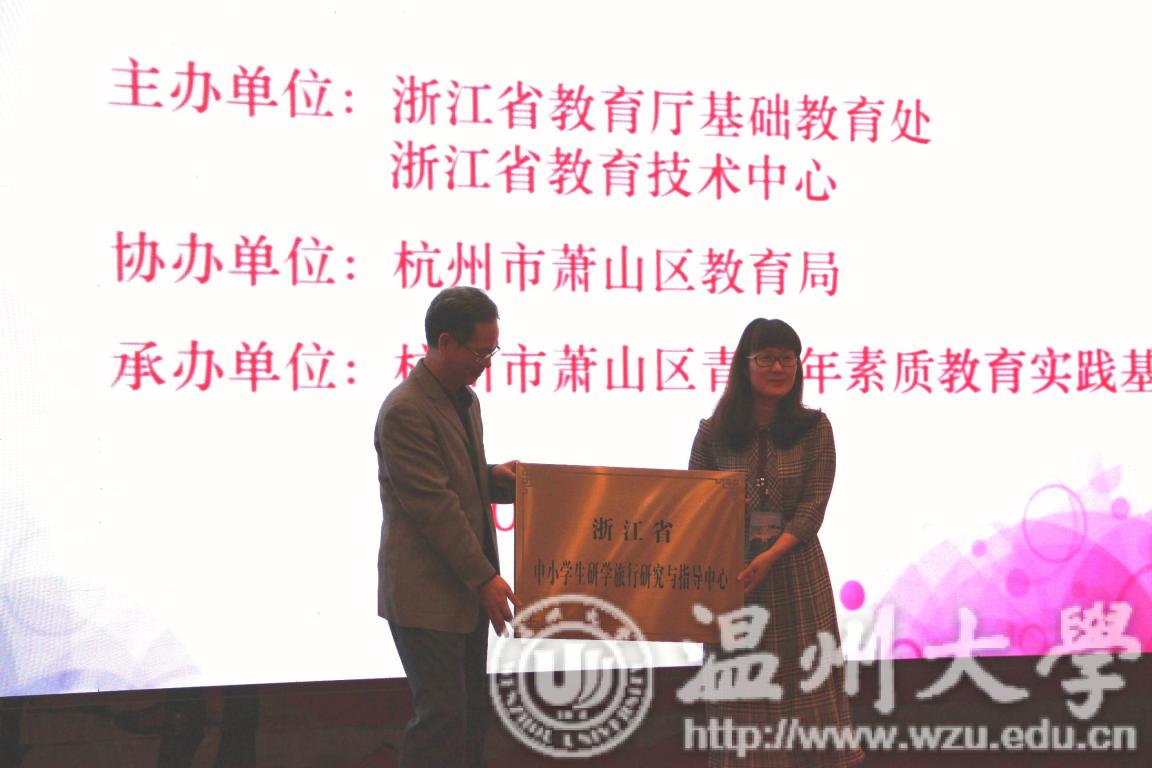 4月9日,浙江省中小学生研学旅行工作培训会在杭州举行。开幕式上,浙江省教育厅为beat365官方网站“浙江省中小学生研学旅行研究与指导中心”授牌。