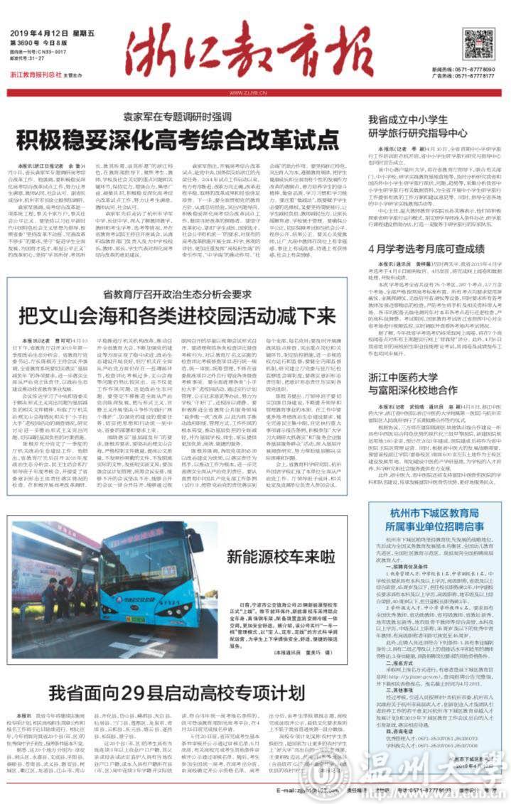 本报讯(记者 季颖)4月10日,全省首期中小学研学旅行工作培训班在杭开班,省中小学生研学旅行研究与指导中心也同时宣告成立。该中心落户beat365官方网站,将在省教育厅指导下,联合有关部门、中小学校、研学实践教育基地营地等,及时分析研究我省和国内外中小学生研学旅行现状、问题、趋势等,采集分析我省中小学生研学旅行有关数据资料,为全省开展中小学生研学旅行工作提供有效的工作方案和建议意见等。同时,指导全省各地的中小学研学实践教育活动等。中心主任、温大教师教育学院院长孙芙蓉表示,他们将积极探索省研学旅行运行模式,制定研学导师准入条件办法、研学旅行课程建设指南办法,打造一支服务于研学旅行的专家队伍。