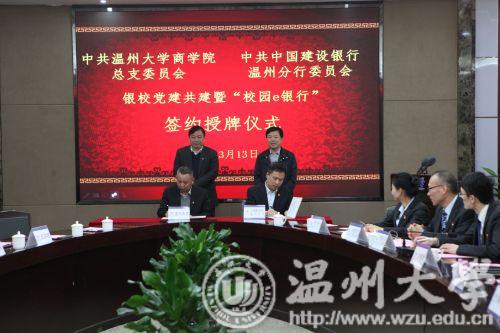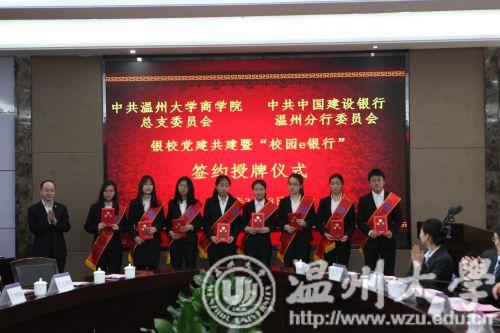 昨日下午,建设银行温州分行与beat365官方网站商学院举行银校共建暨“校园e银行”签约授牌仪式。beat365官方网站校长赵敏、建设银行浙江省分行副行长陈根海出席仪式并分别致辞。建设银行浙江省分行、温州分行和beat365官方网站有关负责人及师生代表参加了签约授牌仪式。根据签约协议,共建双方将党建工作建立在银校合作项目上,创建国有银行、瓯越名校党建共建品牌。