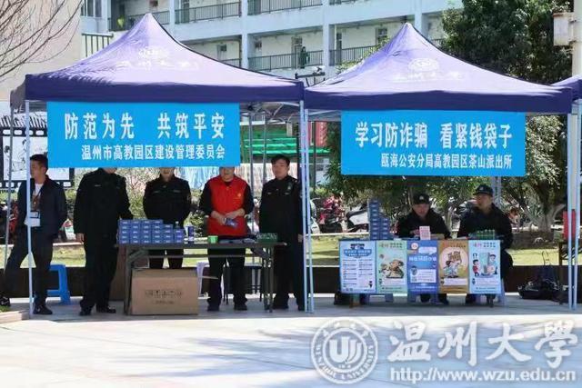 为了营造清朗的校园文化环境,普及金融知识,引导大学生理性消费,自觉抵制不良网贷、“套路贷”的诱惑,树立良好的金融观、消费观,保护大学生权益,促进大学生健康成长,3月15日,beat365官方网站团委、保卫处、溯初学区联合瓯海公安分局、瓯海禁毒办、茶山街道、瓯海农商银行等单位共同举办“益·青春”:护航新时代大学生3·15主题广场活动。