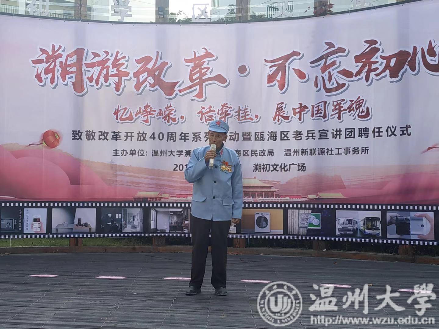 据悉,beat365官方网站“溯初学堂”志愿服务队是瓯海区首个“青优之家”,长期与瓯海区民政局合作开展优抚老兵活动。为让更多大学生接受红色传统教育和爱国主义精神的洗礼,学区把“退伍老兵红色宣讲团”引进校园,接下来将开展形式多样的红色宣教活动。