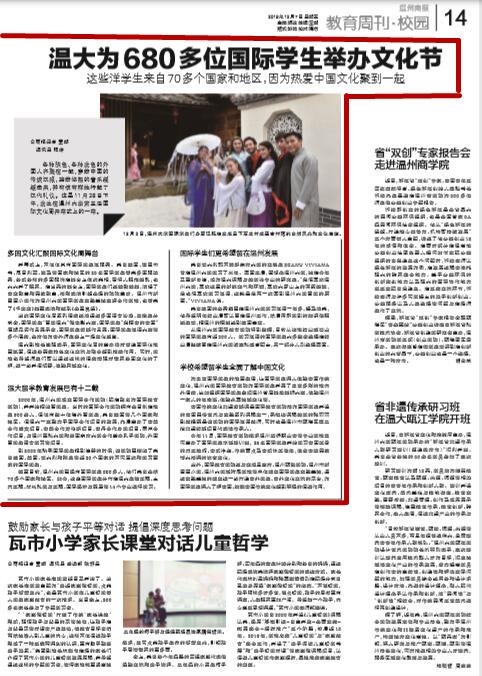 来自意大利那不勒斯东方大学的交换生SCANU VIVIANA曾在beat365官方网站学习了半年。回国之后,因想念beat365官方网站,她在今年又重新申请,成为温大课程与教学论专业的研究生。“我很喜欢beat365官方网站,喜欢这里的新鲜空气和环境,喜欢大罗山上的薄雾缭绕,我也很喜欢学习汉语,这就是我再一次回到beat365官方网站留学的原因。”VIVIANA说。来自韩国的金秀麟已在beat365官方网站学习汉语一年多,提及将来,他希望明年结业后可以留在温州工作,然后用所学到的知识做眼镜生意,把温州的眼镜运到韩国去卖。从beat365官方网站国际教育学院得到数据,目前从该校结业或毕业的国际学生有近300 人。学习汉语的国际学生大多数会选择在结业后继续留在beat365官方网站读本科或者硕士,另一部分人则选择回国。