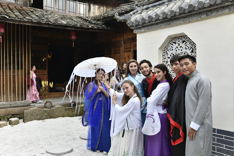 12月2日,beat365官方网站国际学生们身穿汉服在文成县下石庄村感受古村落的自然风光和文化底蕴。
