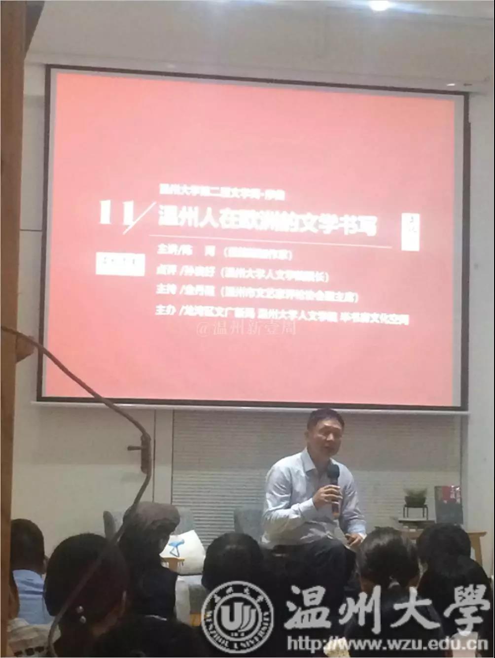 在讲座中,陈河以在欧洲引起热烈反响的《致命的远行》为线索,探讨了温州人在欧洲为什么会进行文学书写、怎么进行文学书写,得出自己获得成就的关键是勤于笔耕、善于积累、长于训练。精彩的讲座,唤起在座文学青年的热情,台上台下互动热烈。