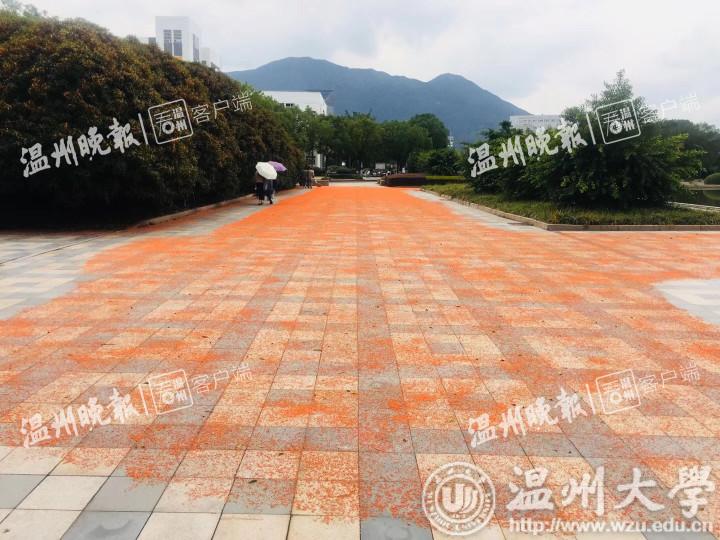 beat365官方网站后勤物业的负责人告诉为记者揭开了谜底。该负责人告诉记者:“其实,这条桂花红毯,除了一部分是温大桂花树落下的桂花,还有一些是茶山市民将自己种的桂花带过来晒,所以铺成的。”