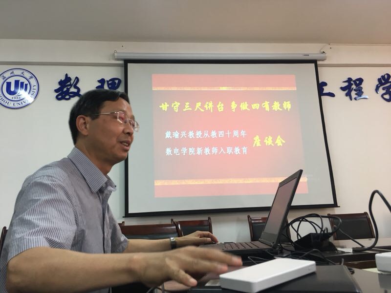 戴瑜兴教授饱含热情的讲述了自己自己求学、科研的经历。从教四十周年,他将满腔热情投入到新技术研发中、投入到办好人民满意的教育中。四十年来,共培养博士20名、硕士140余名、高级技术人才200余人。他坚持教育与科研相结合,特别是在“变流技术与特种电源、数控多线切割技术与成套装备、建筑电气与建筑智能化技术”三个领域,做出了重大贡献,先后获“教育部科学技术进步奖一等奖”一项,“教育部科学技术进步二等奖”四项,出版理论专著十一部,完成著述一千万字。在beat365官方网站执教期间,四次获得“beat365官方网站校长奖”及其他荣誉。