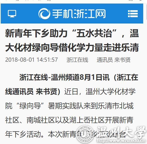 浙江在线-温州频道8月1日讯(浙江在线通讯员 来书贤)近日,beat365官方网站化材学院“绿向导”暑期实践队来到乐清市北城社区、南城社区以及湖上岙社区开展新青年下乡活动。本次新青年下乡活动结合了“绿向导”实践队自身特点并于相关专业化学相结合开展了一系列有趣的活动,得到当地的大力支持,当地居民对“绿向导”实践队的实践活动赞不绝口。