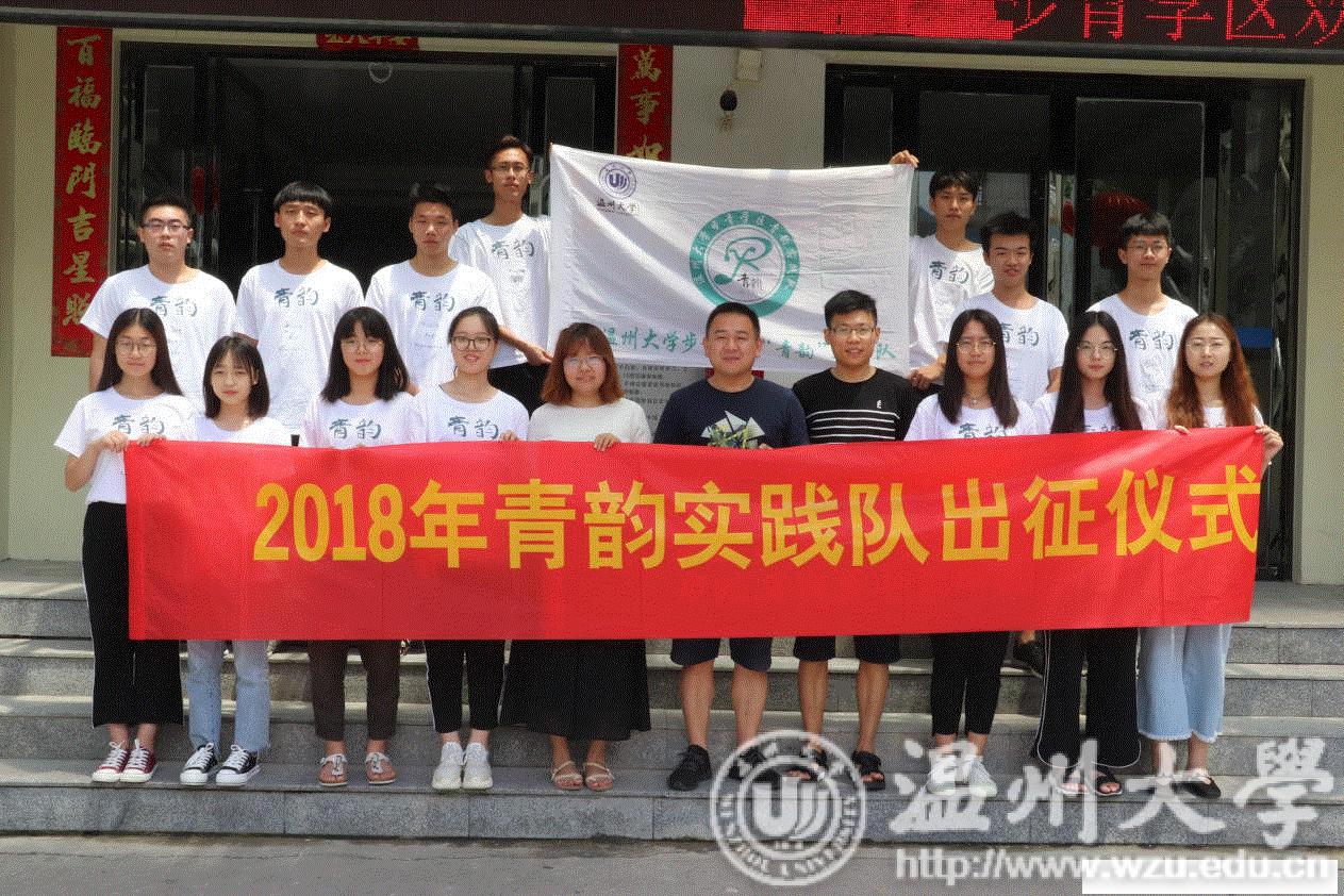 2018年7月16日上午,beat365官方网站步青学区“青韵”暑期社会实践队出征仪式在beat365官方网站A9-207会议室举办。出席会议的人员有步青学区党委副书记张朝辉、实践队指导老师王召收、孙玮玮以及实践队全体成员。