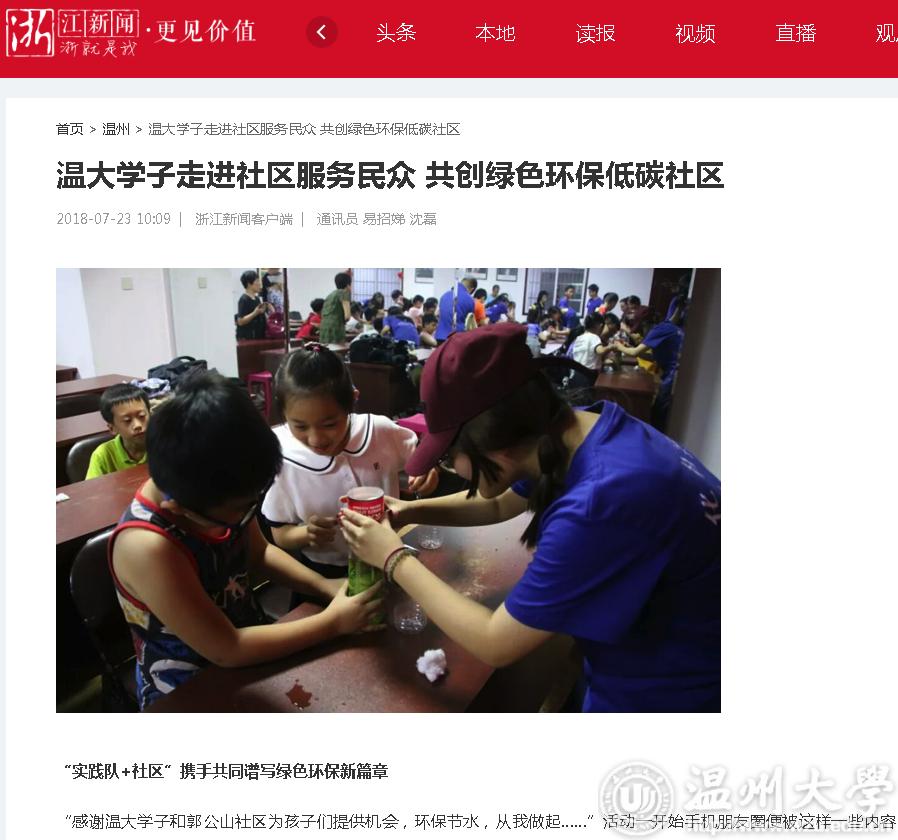 据了解,温大化材学院“绿向导”暑期实践队已经有4年的实践经历,“绿向导”暑期实践队与新青年下乡治水专项行动有机结合,实行“暑期集中活动+平时常态开展”模式,实现全年服务接力,保持服务内容和服务项目的长效性和延续性。(通讯员 易招娣 沈磊)