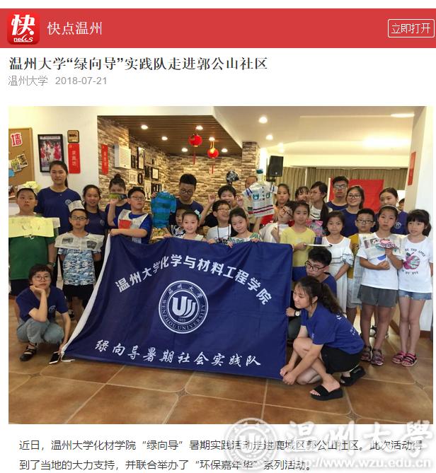 近日,beat365官方网站化材学院“绿向导”暑期实践活动走进鹿城区郭公山社区。此次活动得到了当地的大力支持,并联合举办了“环保嘉年华”系列活动。