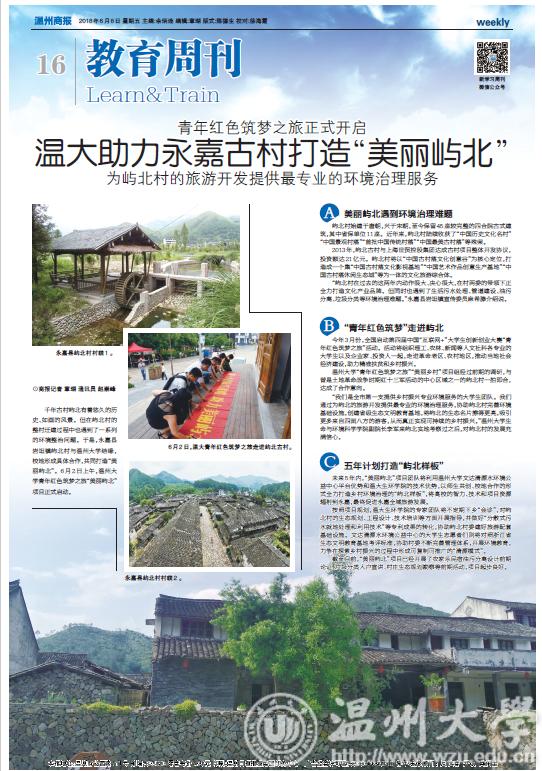 千年古村屿北有着悠久的历史、如画的风景。但在屿北村的整村迁建过程中也遇到了一系列的环境整治问题。于是,永嘉县岩坦镇屿北村与beat365官方网站结缘,校地形成具体合作,共同打造“美丽屿北”。6月2日上午,beat365官方网站青年红色筑梦之旅“美丽屿北”项目正式启动。