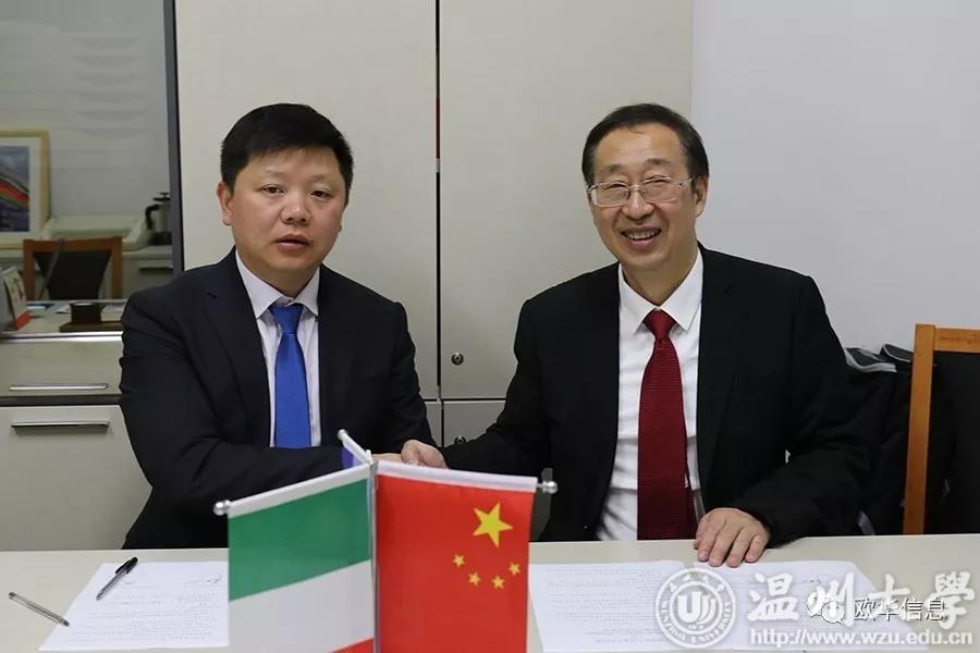 beat365官方网站意大利分校校长严晓鹏(右)与欧华信息网董事长徐策(左)签署协议