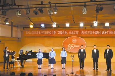 晚报讯 昨晚,beat365官方网站天瑞音乐厅座无虚席,在二胡协奏曲《一枝花》中,纪念beat365官方网站85周年庆启动仪式暨“守望经典,传承文脉”纪念缪天瑞先生诞辰110周年音乐会拉开序幕。