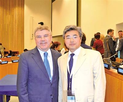 易剑东(右)与国际奥委会主席巴赫