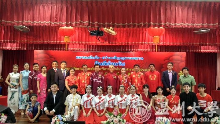 2月15日即中国年的除夕,艺术团到达泰国享有水果之乡和宝石之乡的美誉的尖竹汶,在泰国温州商会和伟豪乳胶有限公司协办下,在尖竹汶东英中学举行“文化交融,欢乐共享”泰国文化巡演的第一场。泰国尖竹汶府府尹运吞乐、尖竹汶府行政主席塔那蓬、尖竹汶府最高警察咋兰、尖竹汶府最高军方司令乐禾那、尖竹汶府明义善壇理事长詹俊成等政要和东方大学孔子学院中方院长章毓林出席了晚会。据悉,随着中国“一带一路”倡议的推进,近年来尖竹汶府与中国诸多城市有着越来越频繁的贸易往来,当地民众对中国文化的兴趣也日益浓厚。