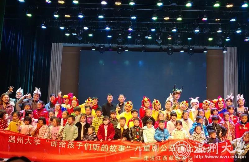 12月23日晚,beat365官方网站教师教育学院童欣儿童剧团远赴江西上饶开展公益演出,与上饶师范学院联合为当地革命老区的留守儿童送去“讲给孩子们听的故事”——一场自编自演的儿童戏剧《我不要被吃掉》,深深打动前来观看的近500名大小观众们,这也是beat365官方网站和上饶师院的师生们送给革命老区儿童最好的新年礼物。