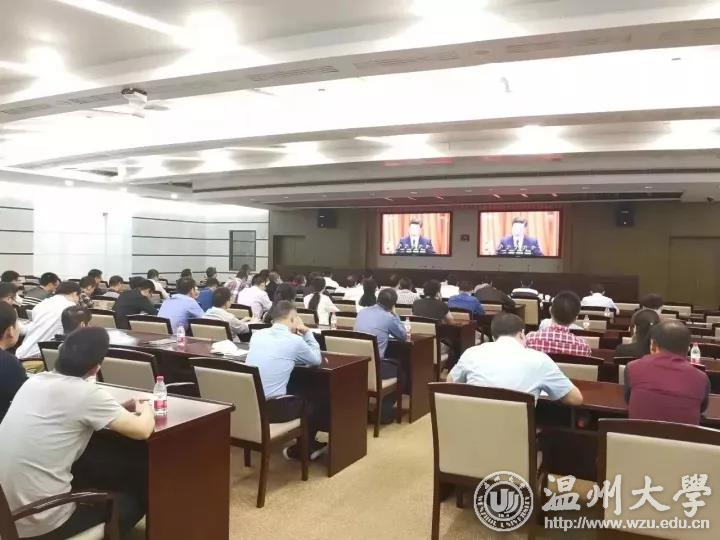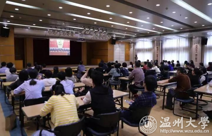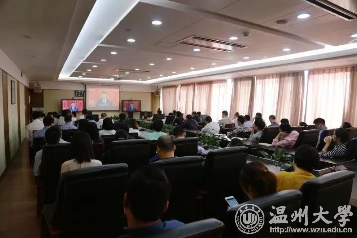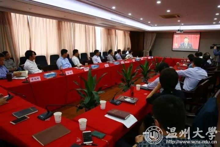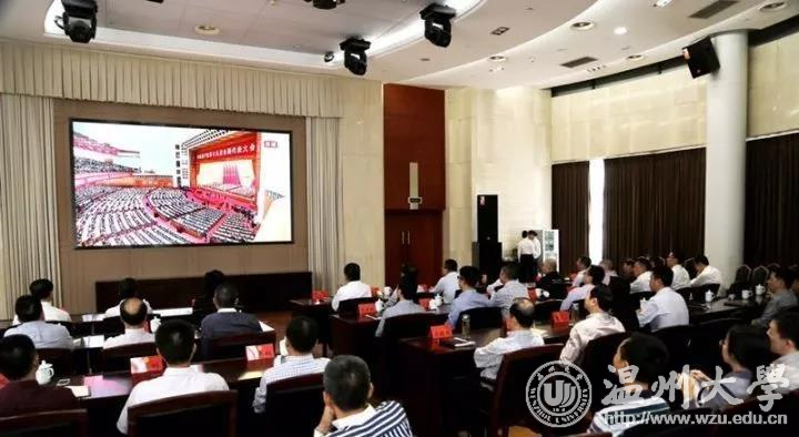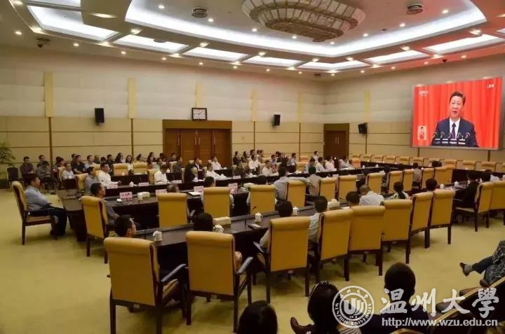 beat365官方网站机关全体工作人员集中在礼堂收看大会直播,马克思主义学院、教师教育学院、人文学院等18个学院,步青、溯初、超豪三个学区,也分别组织师生不同形式的收看活动。