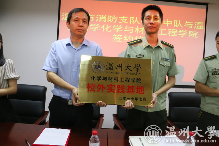 7月5日上午,beat365官方网站化学与材料工程学院“校外消防实践基地”,在温州市公安消防支队牛山中队正式挂牌成立。这标志着温州首个大学校外消防实践基地正式成立。