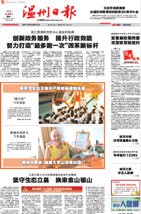 昨日,一位与温州大罗山结下不解之缘的老朋友将要离开温州了。过去6年里的每个星期日,在大罗山,他一个背包,包里装着几十个编织袋,一路走一路看,一有垃圾就俯身捡起来。他用脚步掂量着个人的梦想,也丈量着城市的文明。他是伊凡,1953年出生,beat365官方网站瓯江学院澳大利亚籍外教,温州市民眼中“大罗山的环保卫士”“捡垃圾的洋雷锋”。今年7月4日,他将离温回国。 本报记者 朱帆 通讯员 王旭黎 从澳大利亚到温州,从课堂到户外,从第一次到最后一次,从一个人到一群人……近6年里,洋朋友伊凡走在大罗山,一次次俯仰拣拾,践行着个人“自私”的想法,兑现着并不轻松的承诺,努力实现着美好的夙愿。 “捡垃圾,这是一个很自私的想法” 伊凡,走过美国、英国、印度、泰国、阿富汗等地方,在来温前待过广东茂名。妻子只在中国待了一天就走了,他却留了下来,一留就是七年,他说“独立的生活不该将两个人绑在一起”。但年过花甲的他,终要落叶归根,家里93岁的老母亲、妻子以及3个孩子,都让他必须做出这个有些不舍的决定。 他当过二十多年的兵,当过一年的农民,参加过乐队,从43岁起倒腾过不少工作,直到50多岁才拿起教鞭。伊凡说,他的个人简历足以写一本书,而这本书里最有意义、最精彩的华章就在温州。他从没想到,自己在澳大利亚形成的“捡垃圾”习惯,会在中国在这里有着如此不同的反响。当“伊凡现象”不胫而走,当大罗山的一个亭子被命名为“伊凡亭”,他的内心也激动膨胀过,但他总是不断叩问自己,“我是谁”“我能做什么”,如此反复,他说能让自己冷静下来。 “捡垃圾,是我一个很自私的想法。毕竟,我就生活在这里。”伊凡说。 “捡垃圾,是我可以做,坚持做的事” 但当一个行者把自己托付给大山,感受着自然与人相融的无限美妙时,便会陶醉其中。 当有人开始询问并经常发问,“何时去捡垃圾”“哪里捡垃圾”时,他开始意识到自己这个“自私”的想法不再是属于一个人,而是属于一群人,属于更多的人。“这已变成了责任!”伊凡说。 在采访中,伊凡始终坚称自己不是一个“聪明人”,“水、空气的清洁,只能交给聪明人去做,我的许多学生就比我聪明。我能做的是捡垃圾,捡起来,再捡起来,坚持做同样一件事情。” 从2011年12月来温的第一个星期起,他开始在大罗山捡垃圾,一周三四次,捡出了10来袋。一个月后,他精力无法支撑,索性就择定每周周日,风雨无阻地捡。 从最初的同一地点捡垃圾,到后来范围的逐步扩大,他身后的队伍也越拉越长。后来,一周的垃圾变少了,只能捡出三四袋了,原来苦寻的垃圾桶能被轻易找到,那些原来有着好奇疑问的眼光也不在了——他确信,文明真正的基础,在那些平凡的践行。这个创意无限的城市,主题不再只有创造财富,而是体现在文明的生活方式中。 “我的中国梦,就是大罗山没有垃圾” 昨日是伊凡与大罗山的“最后一次别离”,于他而言,有些特别,有些意味深长。 “没有什么好嘱托的,唯有感谢!”伊凡指着“温州市净美环保志愿者中心”给出的承诺书说道。透过他微笑的脸庞、坚毅的目光,感受那种发自于内心感情和力量。 “我的中国梦,就是大罗山没有垃圾!”伊凡说。 相关链接: 温州日报:http://epaper.wzrb.com.cn/content.aspx?id=329233