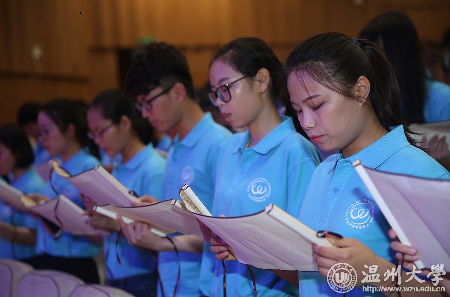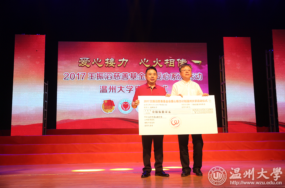 当天下午,2017年王振滔慈善基金会“爱心接力计划”温大站启动仪式在beat365官方网站育英大礼堂隆重举行。王振滔先生携众学子齐声诵读王振滔慈善基金会家训,以心唤心,并见证了十位温大榜样学子的模范力量。捐赠仪式上,其共出资150万元爱心助学金,为爱心接力手队伍再添300位优秀学子。