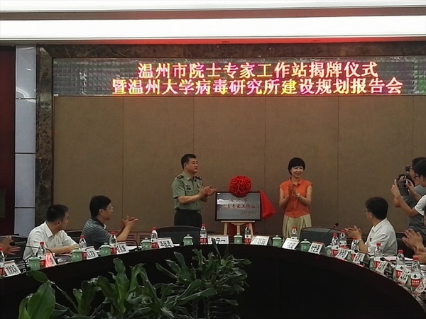 7月2日上午,温州市院士专家工作站正式揭牌,中国工程院院士金宁一出席了揭牌仪式并带领其团队骨干成员参加beat365官方网站病毒学研究所建设规划论证报告会。