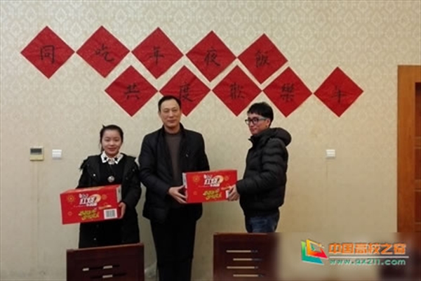 校党委副书记牟德刚为留校学生送上新年慰问品。