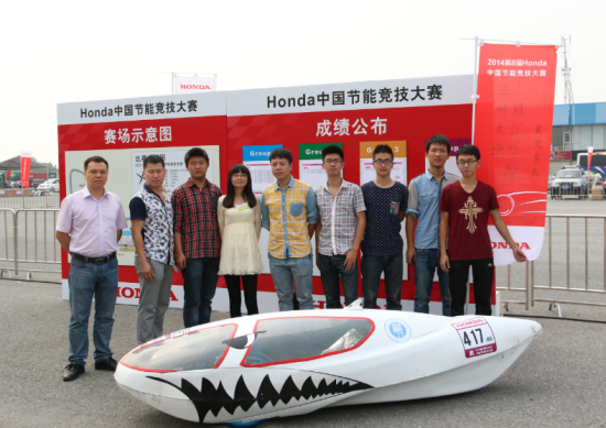 据悉,Honda节能竞技大赛自2007年进入中国以来,已经成功举办了八届,吸引了社会各界人士的广泛关注。大赛规模逐年扩大,参赛队伍也不断增多,西北交通大学、清华大学等各大高校均参加比赛,日前,瓯江学院的晨光车队更是力压清华大学参赛车队,获得全国Honda节能竞技大赛大学组第5名的佳绩。(通讯员:杜晓哲 吴意达) 相关链接:http://zj.sina.com.cn/edu/dzyx/2014-10-29/111020957.html?qq-pf-to=pcqq.group