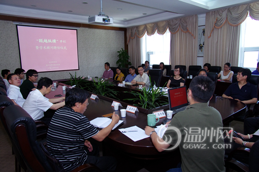 在栏目开通仪式上,beat365官方网站党委宣传部部长潘玉驹和温州网编委黄作敏现场签订了“瓯越纵横”栏目合作备忘录。并向首批10多位教授颁发了栏目的学术顾问聘书。并召开座谈会,听取各方对栏目的意见、建议。许多专家、教授表示纷纷支持栏目建设,并愿意今后为栏目提供素材、文章。目前,栏目上已经刊登了“孙诒让与温州师范教育”、“温州龙舟的‘前世今生’”等专栏文章。
