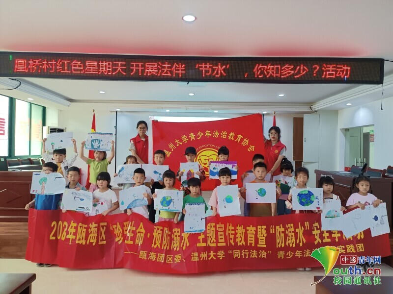 图为实践团在郭溪街道凰桥村党群服务中心开展防溺水主题安全法治教育活动。中国青年网通讯员 章志铖 供图