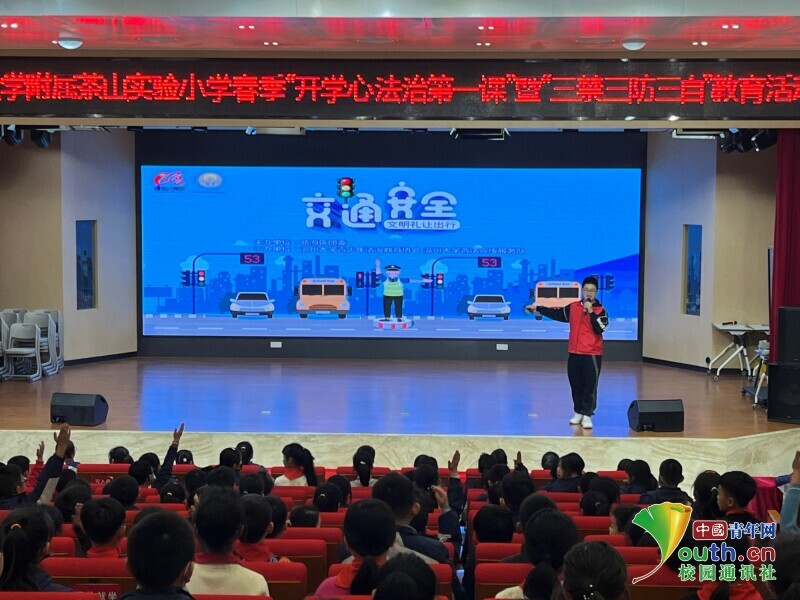 图为实践团在beat365官方网站附属茶山实验小学开展交通安全法治教育活动。中国青年网通讯员 章志铖 供图