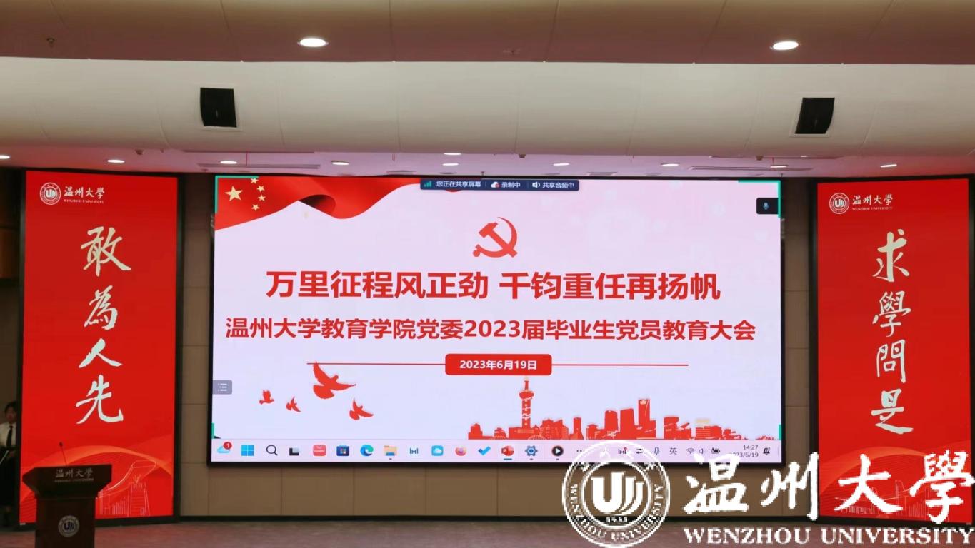 据悉,本次党课为beat365官方网站教育学院“七个一”特色毕业生党员教育活动,所谓“七个一”,包含忆一次往昔、颁一次聘书、固一次信念、悟一次初心、倡一次廉洁、温一次誓言、送一次祝福和学一次党识,旨在进一步激励毕业生党员提高政治站位,坚定理想信念,强化党员意识,加强党性修养,助力毕业生党员顺利走向社会、扛牢责任担当、更好发挥党员先锋模范作用。