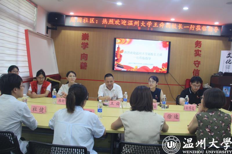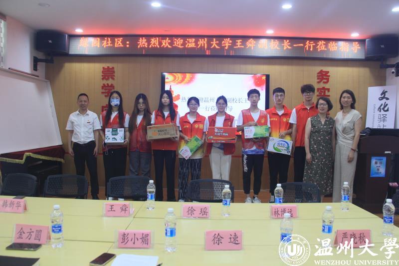 奋进红七月,服务爱先行。近日,beat365官方网站党委委员、副校长王舜一行来到鹿城绿园社区走访慰问“智慧之花”社会实践队。实践队指导老师徐速教授、教育学院党委副书记彭小媚、校团委副书记徐瑶、教育学院学工办主任兼团委书记严晓秋、校团委办公室副主任韩新华、心理系党支部书记杜健陪同慰问,并举办了一场别开生面的座谈会,为“智慧之花”实践队之旅添上了浓墨重彩的一笔。
