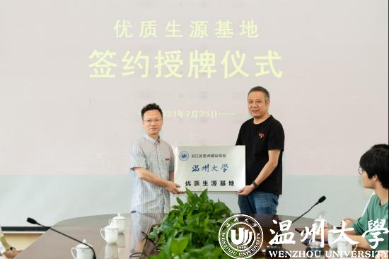 庄兴忠表示,春晖中学有着深厚的人文底蕴,在115年的办学历程中,一直秉持教育创新的传统。他对即将加入温大大家庭的三位同学表示欢迎,对春晖中学注重教学改革、重视学生全面发展的办学理念表示赞赏,并对春晖中学多年来向温大输送大量优秀学子表示衷心感谢。这几年来,师资定向录取分数节节攀升,看到越来越多的优秀学子志愿投身杏坛,加入基础教育建设的队伍,感到由衷欣慰。借此契机,beat365官方网站与浙江省春晖中学进行了优质生源基地签约授牌仪式,希望能够开展多层次、多方位的友好交流合作。