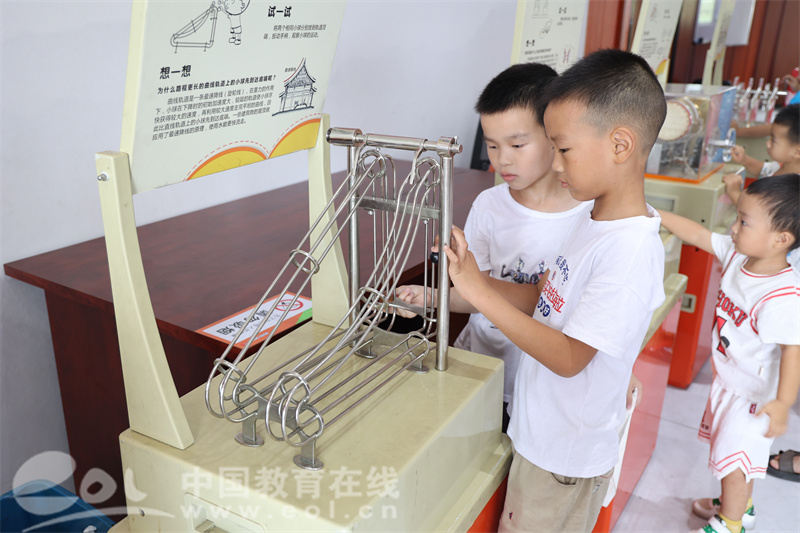 “重力是地球或其他物体对物体的相互吸引力,重力大小取决于两个物体的质量以及它们之间的距离,具有较大质量的物体将会产生更强的重力……”在科普展品“最速降线”前,大学生为孩子们讲解了有关重力的知识,也让孩子们对生活中的重力有了具体感知。