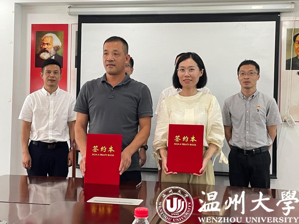 在签约双方领导及实践队队员的见证下,乐清市淡溪镇梅溪村党支部和beat365官方网站人文学院教工第三党支部签订了战略合作协议。协议围绕党建共同体、乡村文化资源保护、地名历史内涵挖掘、文艺作品创作等方面达成了合作意向,进一步促进双方信息互通、资源互享,推进乡村振兴工作。
