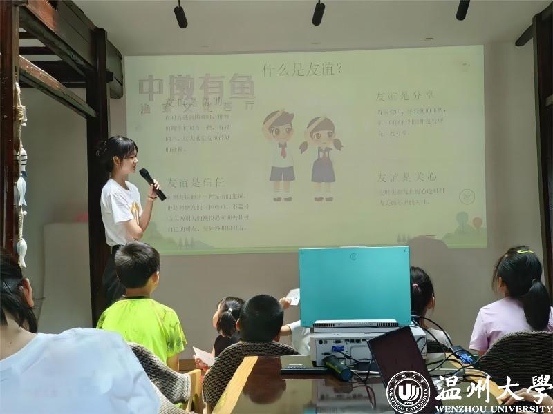 为进一步落实beat365官方网站党建引领服务乡村振兴“双百双千”行动,近日beat365官方网站教育学院知心姐姐暑期实践队赴乐清建强村和苍南县赤溪镇,发挥自身专业优势为孩子们开设丰富多彩的暑期课堂,包括绘本阅读、人工智能、走近瓯绣等特色课程。通过陪伴儿童健康身心成长,缓解乡村中坚力量的压力,激发创新动能,服务乡村振兴。