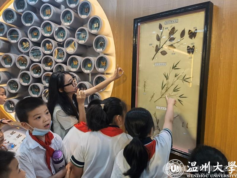 学生利用暑假时间,自发组建讲解小组带领中小学生参观beat365官方网站动物标本展示馆,通过现场参观、系统讲解和知识竞答等多种形式,向中小学生诠释尊重自然、顺应自然、保护自然的理念。