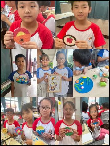 山水名城温州古称“瓯”,一条瓯江孕育着温州勃勃的生机,更涤荡出多种独特的民间工艺。知心姐姐馨馨老师带来特色课程“走进瓯塑”,小营员们以盘子为画纸,以瓯土为画笔,当起“小小瓯塑家”。几幅名家之作引得孩子们惊叹不已,纷纷说出瓯塑的特征——画面色彩明快,构图格局自由,层次清晰,立体感强……课堂氛围活跃热烈,学生积极发问、频繁互动。制作过程中,他们将想象赋予瓯塑,画下喜欢的图案,再“捏、揉、搓”瓯土,用“木蹄儿”小心翼翼地塑形……一幅幅精美立体的瓯塑作品诞生了,不少孩子由此爱上了瓯塑:“真是太有趣了,原来我也能做出瓯塑,回家我还要雕刻更多好看的作品……”特色瓯塑课程旨在以非遗美育为抓手,培养小营员多元文化意识和文化认同,让孩子在劳动实践中学习先辈手艺,感悟工匠精神。