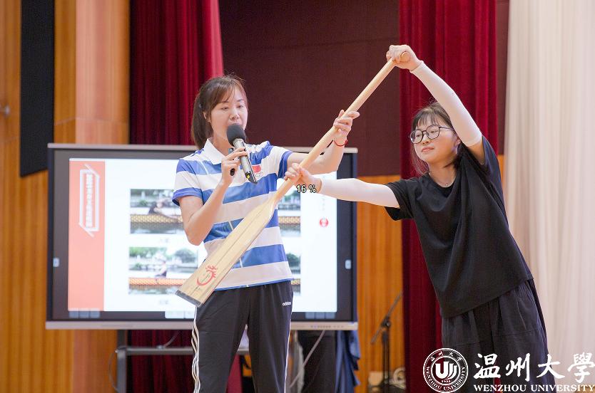PART 02退役回温州 致力推广龙舟2016年,在离开家11年后,朱敏圆从国家队退役,回到家乡,在beat365官方网站成为一位教师,主抓龙舟项目,将水上运动的种子播进了温大的校园。