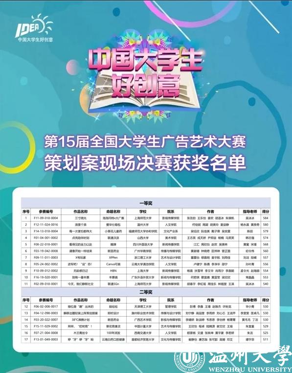 天高云淡,秋风送爽。万物春生夏长,秋收冬藏,在秋天结出果实,落在九月的土壤。在金秋九月这个收获的季节,“中国大学生好创意”第15届大广赛策划案现场决赛亮相温州,以专业知识与专业素养融合的实战演习,谱写策划案现场决赛新篇章,综合展现了大广赛激励下的多学科交叉应用的特色实践教学成果。