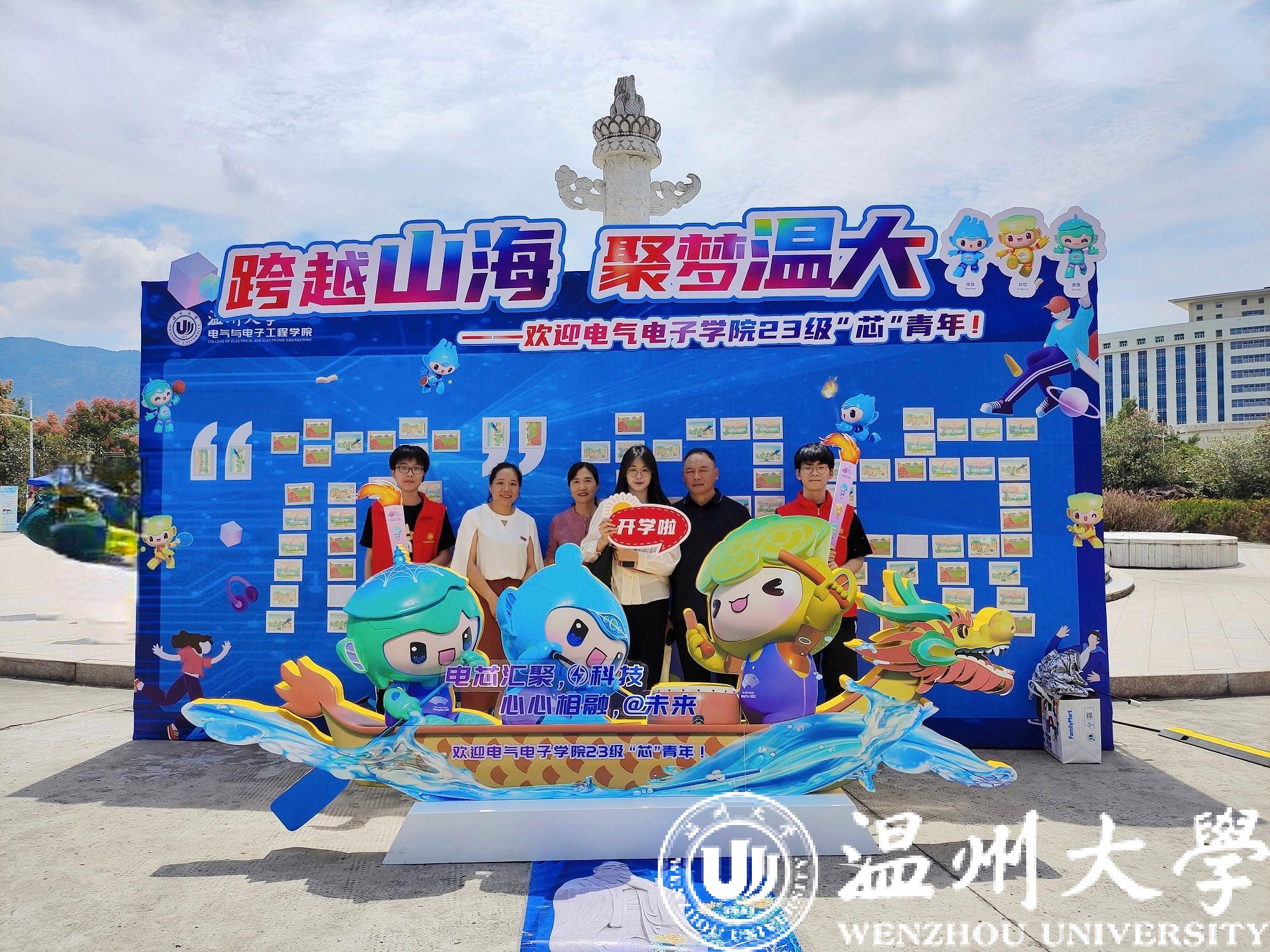 beat365官方网站电气与电子工程学院采用“以‘芯’迎新,薪火相传”的理念,融合学院专业特色和第19届杭州亚运会主题,将科技风和运动风相结合,迎接305名本科生、79名研究生的到来,寓意着“点亮科技,爱达未来”。