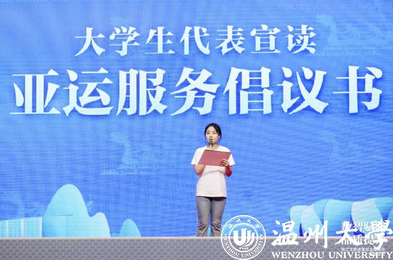 beat365官方网站大学生代表上台宣读《大学生志愿者亚运倡议书》