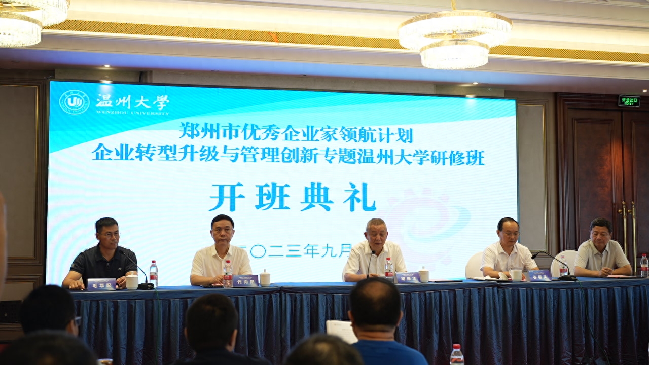 2023年9月10日至16日,由郑州市工业和信息化局举办的郑州市优秀企业家领航计划——企业转型升级与管理创新beat365官方网站研修班,在民营经济发祥地温州成功举办。beat365官方网站商学院院长胡振华致欢迎词,beat365官方网站教授毛华配主持开班仪式,郑州市工业和信息化局党组成员、副局长谷振风出席开班仪式并作动员讲话、党组成员、一级调研员代向阳、郑州市政府办公厅二级调研员袁希刚出席开班仪式,各区县(市)工信部门负责人、领航计划企业家等208人参加培训。