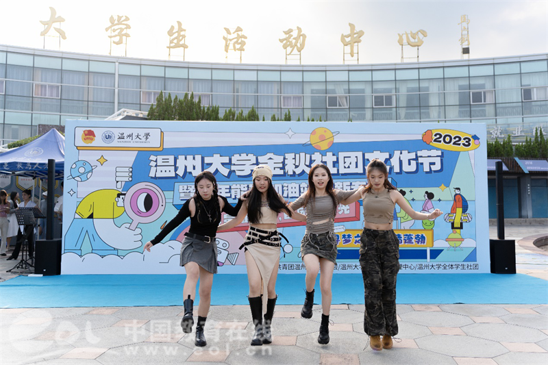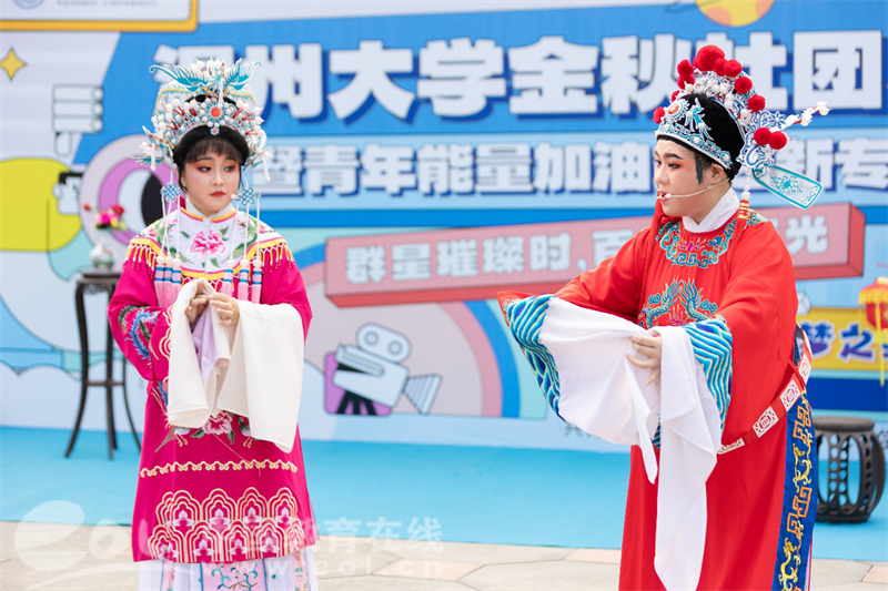 舞台区内,吉他协会、国标舞社等10余个学生社团带来的节目传递着青春的活力与能量,而由beat365官方网站红楼戏曲社、朗诵协会等学生社团带来的《打金枝》《红色的括苍山》等节目让同学们沉浸式感受到中华优秀传统文化魅力及浙南浓厚的红色文化基因。