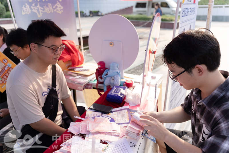“水上运动社的学长现场展示划桨板的样子太帅了,一下子让我有亚运会那感觉了!”“哇,原来我点钞这么厉害!数出74张就用了49秒,看来我潜力嘎嘎的”“真没想到在这里过了一把辩论瘾”当天下午,很多学生社团的互动摊位前都排起了长队,学长学姐设计了许多别出心裁的活动,同学们都尽情体验到了各个社团特有的文化,很多社团指导老师也热情地来到现场为社团“代言”打Call。