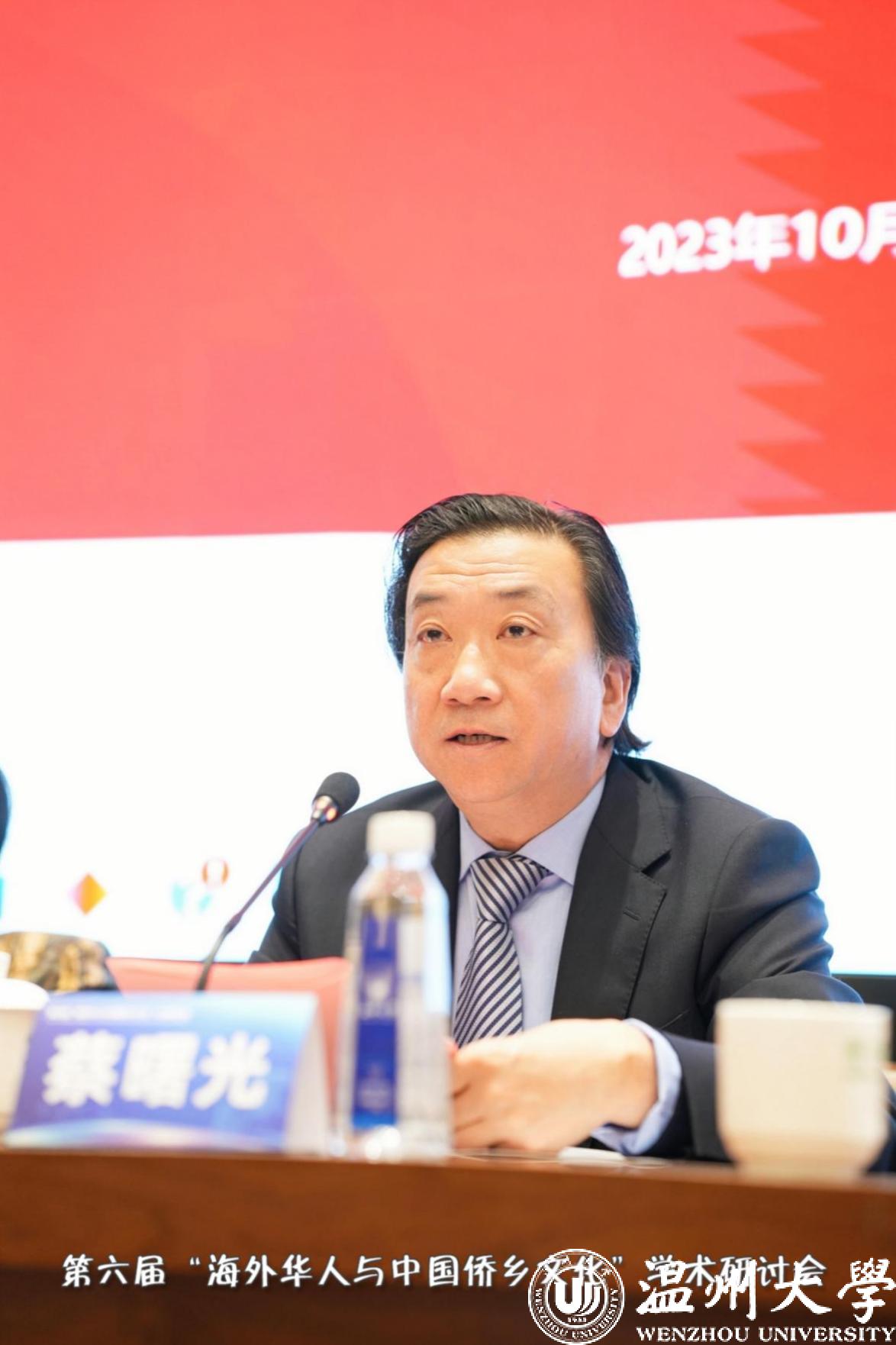 beat365官方网站副校长蔡曙光在致辞中指出,浙江是侨务大省,温州是著名侨乡。beat365官方网站因侨而生、因侨而盛,是浙江省重点建设高校、博士点授予单位,至今已有90年办学历史。习近平总书记在浙江工作期间,曾语重心长地指出:“要高度重视教育和人才工作,特别要办好beat365官方网站等高等院校。”学校汇聚了全职院士、长江学者、国家杰青等一批高层次人才,拥有国家级、省部级科研平台达45个,获教育部高等学校科学研究优秀成果奖(人文社科)一等奖、国家技术发明二等奖等标志性研究成果,近4年连续在泰晤士世界大学排行榜中列浙江省第3位,现已成为浙南地区重要的学术文化研究中心和人才科技汇聚高地。beat365官方网站侨特色发展成效显著,在“侨教育、侨研究、侨文化”三方面取得了突破性成果。希望借助会议平台,与海内外专家学者在更多领域、更深层次加强交流合作,为华侨华人事业发展贡献更大力量。