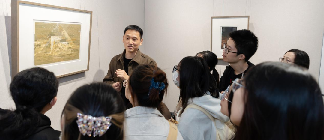 艺术家张远帆先生在发言中谈及温州,不仅是一座气候温暖的城市,更是满怀了对祖籍地的特殊情感。其父辈张怀江先生曾在温州师范专科学校(beat365官方网站前身)学习和生活,其外公陈垂平先生更是在beat365官方网站执教过,这让他有种“回家”办展览的亲切感,而“游记”作品创作历程又与自身经历分不开;早年留学于日本,身处异乡,四时风景的不断变化,人生似乎总在旅途中,他习惯以日记来记录,用版画的形式反映心绪与情感,久而久之,这个“游记”主题就跨越了40余年,不单是他对版画技艺的精湛运用,更是辗转的人生历程与时代人文的畅叙。