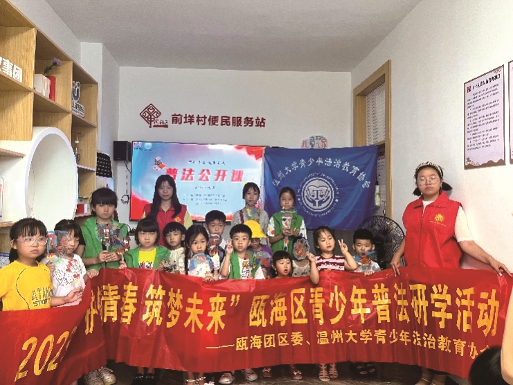 在这场以需求为导向的志愿服务活动中,“普法讲解员”郭张雨与其他4名大学生志愿者与学校三年级250余名同学,共上内容丰富、形式多样的法治安全教育公开课,为即将迎来暑假的同学们敲醒生命安全警钟。值得一提的是,这次法治安全教育是团队结合瓯海区各中小学、村社的订单式需求反馈,而有针对性将青少年安全自护知识融入法治教育当中,既提高同学们的安全意识、筑牢生命防线,又提升青少年的法治素养、熏陶法治精神。