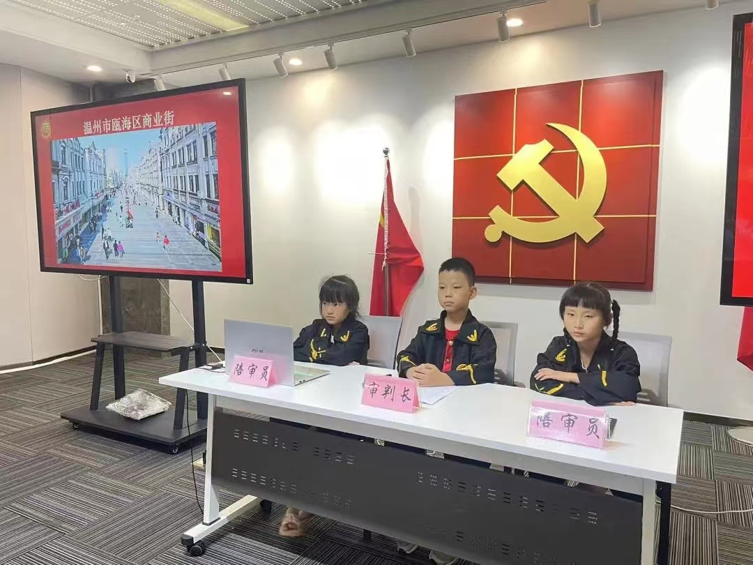“砰——”扮演“审判长”的营员穿着法官袍,敲响法槌,正在活动室里朗声宣布“开庭!”