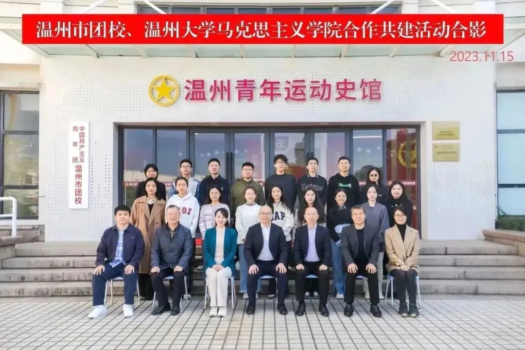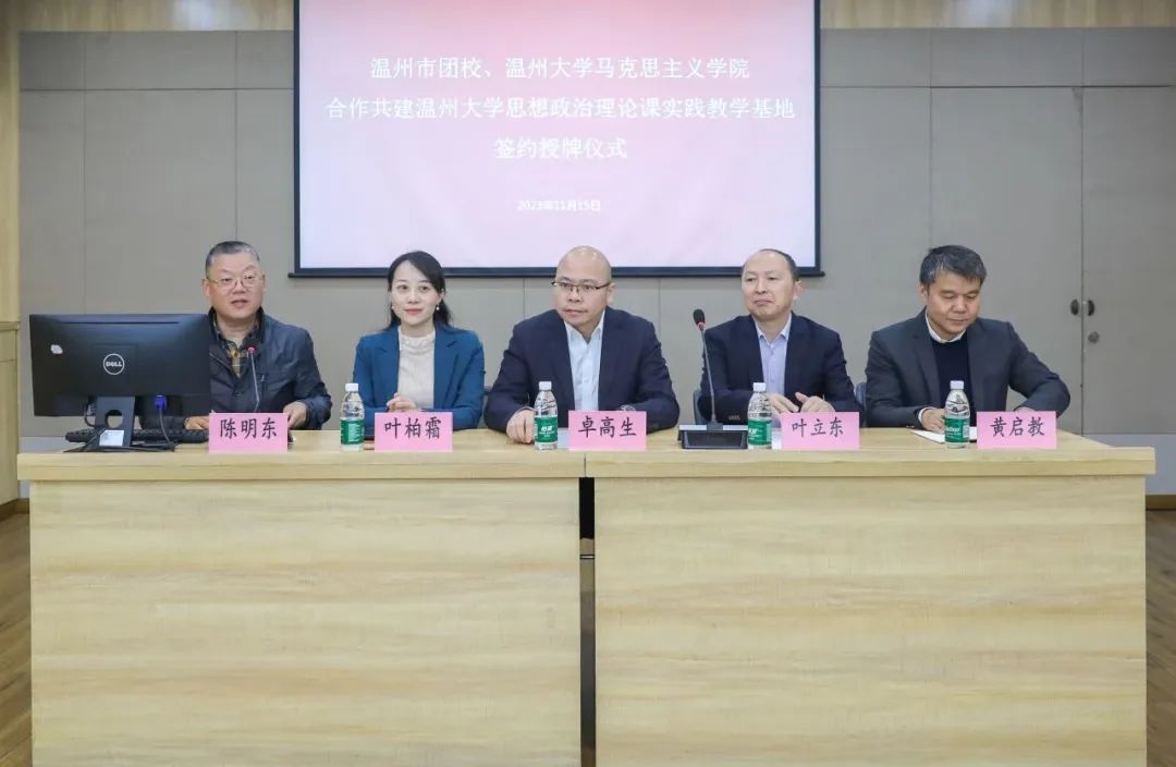 为充分整合温州青运史馆和beat365官方网站马克思主义学院的教育资源,深入贯彻落实党中央,以及浙江省委、温州市委关于学校思政课改革创新的实施意见,扎实开展高校思想政治工作,2023年11月15日上午,温州市团校与beat365官方网站马克思主义学院签订合作共建协议,并在温州青运史馆建立beat365官方网站思想政治理论课实践教学基地。beat365官方网站马克思主义学院院长、教授卓高生,beat365官方网站马克思主义学院副书记叶柏霜,温州市青少年活动中心党支部书记、主任叶立东,温州市青少年活动中心副主任、温州市团校副校长黄启教等双方领导出席合作共建签约及思政教学基地揭牌仪式。